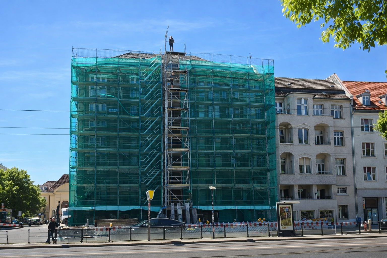 Einsatz von Schutz- und Dachfanggerüsten in Berliner Bezirken